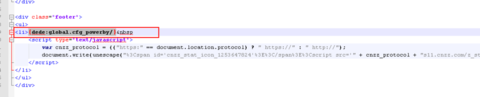 然后我們在網(wǎng)站的footer.htm文件中用標簽{dede:global.cfg_powerby/}進行調(diào)用。根據(jù)自己網(wǎng)站的實際情況來調(diào)用位置。
